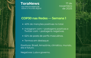 Ao longo da primeira semana da COP30, o Torabit monitorou 92.027 publicações nas redes.40% das menções foram positivas, 35%...